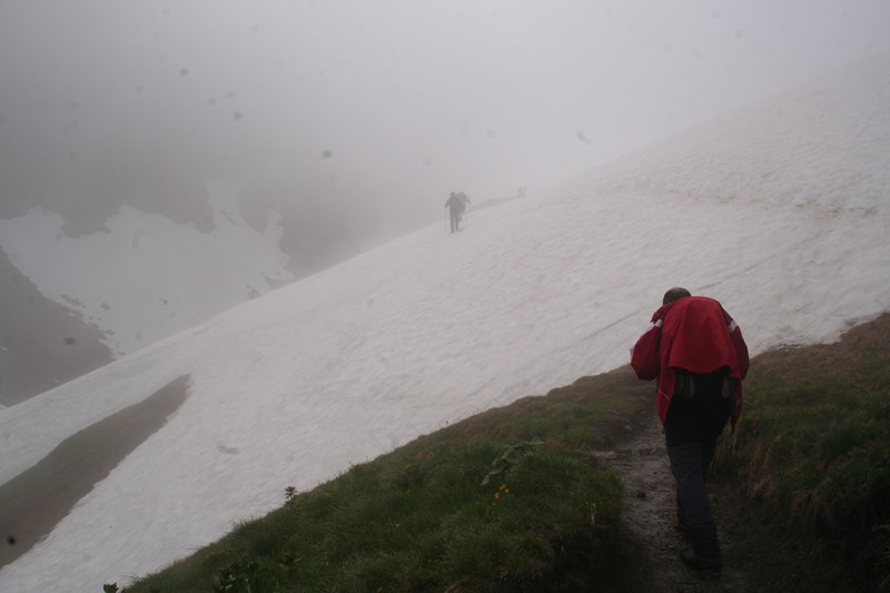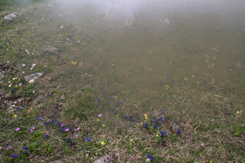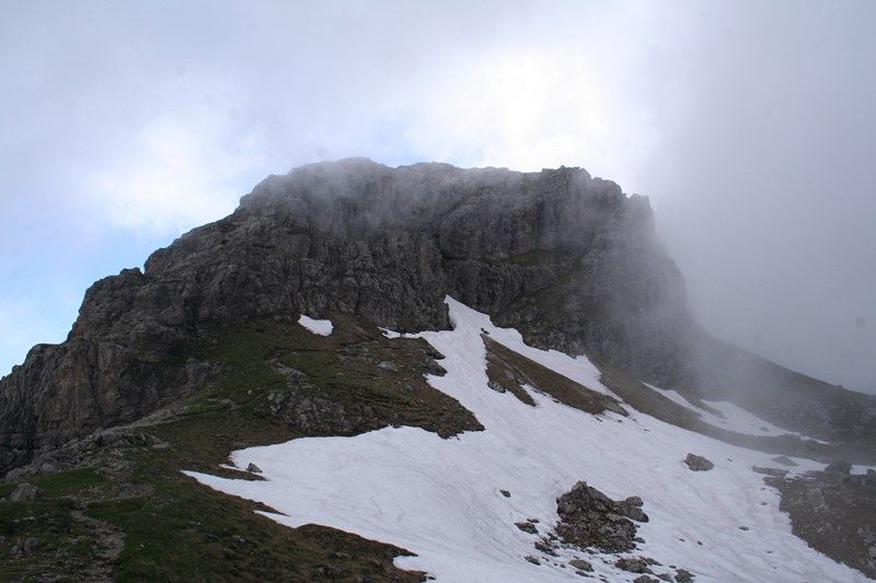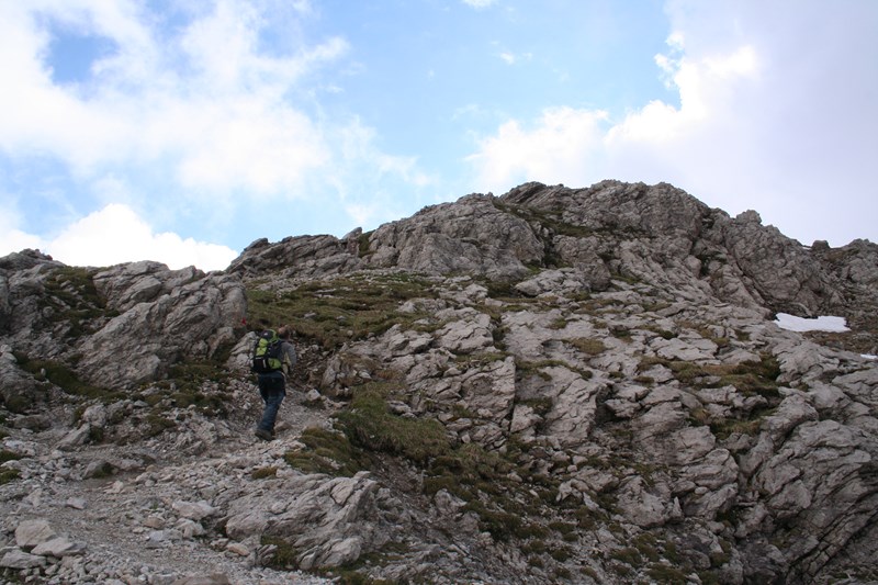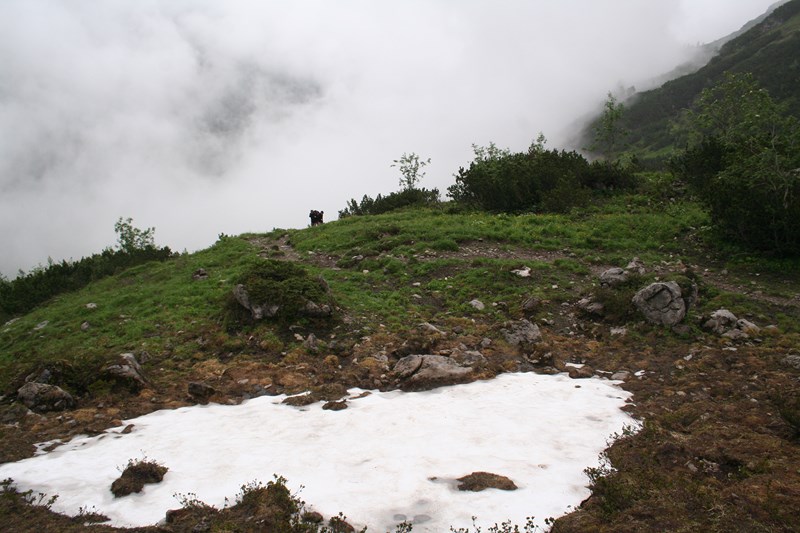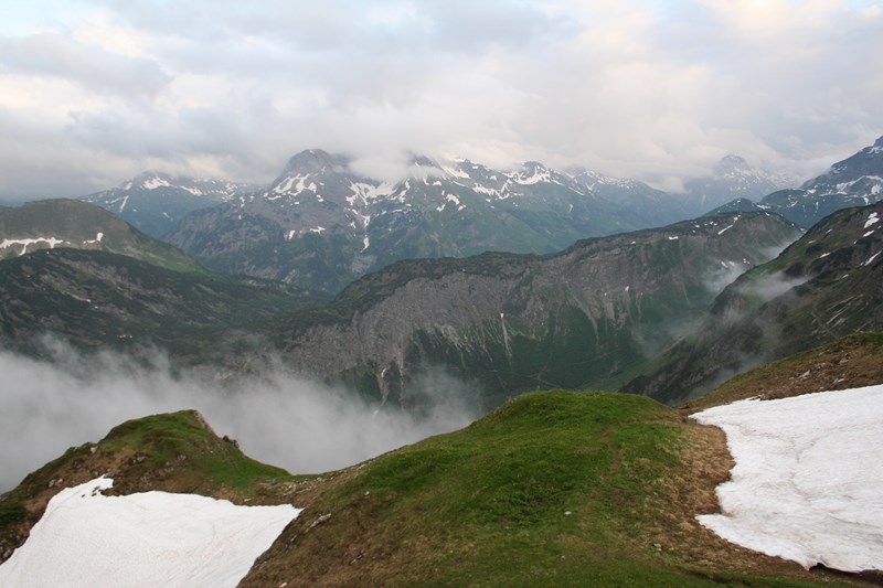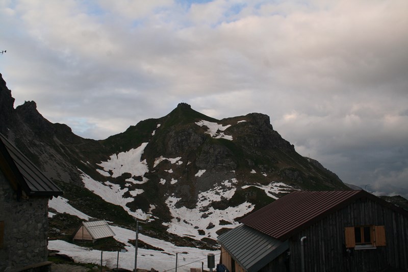 Ein Bergwochenende ohne Ambitionen Kontakt mit dem Fels aufzunehmen, stand an. Der Wetterbericht lies nichts Gutes erahnen... dies sollte Jens und mich nicht abhalten, zum einen etwas für die Ausdauer zum anderen etwas Abwechslung in den Alltag einfließen zu lassen. Klar Südamerika mit seiner Kordilleren, ein Fernziel am Ende des Jahres das höchsten Ansprüchen entspricht, bedarf einer guten Vorbereitung. Aufgrund der Perspektive war die Anfahrt nach Oberstdorf auf Samstag früh gegen 8.00 Uhr gelegt worden. Ein Supermarkt ein Idealer Ort um frischen Proviant zu erwerben, wenig später der Ausgangspunkt des Trips die Talstation der Fellhorn Bahn um 10.00 Uhr bei überraschend angenehmen Wetter erreicht, ein kleines Vesper vertilgen hmmh Lecker, Rucksäcken packen, nichts konnte uns noch halten. Vorbei an der Talstation, schon nahm die Steilheit zu, abwechslungsreich in einer Landschaftlich schönen Kulisse öffnet sich das Tal in Richtung Süden,  zu einem großen Kessel, die Wolken hingen hier sehr Tief es könnte auch von Nebel gesprochen werden, jedenfalls viel eine Art von feinstem Londoner Regen. An einem neu erbauten Forststand nutzten wir denn überdachten Platz für eine Trinkpause, ein nebenan gelegener Bach spendete frisches kühles Wasser, das Glockengeläut des Jungvieh auf der Weide sorgte dazu für eine Angenehme Atmosphäre. 12 Jahre waren seit dem letzten Besuch anlässlich der 1.Profitour 2001 vergangen, noch war uns alles bekannt doch es sollte sich ändern, eine drei Köpfige Gruppe war drauf und dran ihr Können zu beweisen doch nach dem ersten Steiler Anstieg, ging ihnen die Puste aus, an dieser an der Nordseite gelegen Passage zeigte sich die Natur von ihrer schönsten und zartesten Seite,  kaum war der Schnee gewichen blühte und grünte es schöner als in einem Traum, ja es war eine Pflanzen Vielfalt ihres gleichen. Langsam nahmen die Schneeflächen zu, ja das Frühjahr 2013 hatte deutliche Spuren hinterlassen. Die ersten Spuren des Anstiegs stellten sich ein, es wurde wieder ins Bewusstsein gerufen, ein Anstieg auf die Fiderepass Hütte hatte so einige unserer Kameraden auch in jüngeren Jahren zu schaffen gemacht.