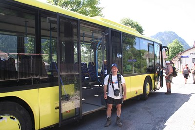 Nachdem klar war wo der "Kreisverkehr" ist, (Bushaltestelle) konnte uns nichts mehr halten. Etwas verspätet traf der "Tälerbus" ein, auf die Frage nach einer Gäste Karte ein Ehrliches Nein! Passt schon nehmt Platz, auch nicht schlecht eine Freifahrt nach Pfronten. Trotz einiger Stopps ist das Ziel der Bahnhof Breitenberg in 35 Minuten erreicht, bis zum PKW waren es dann noch 300 m. Trotz Zähfließenden Verkehr um Memmingen blieb an diesem Tag noch genügend Zeit die Tour zu genießen.
