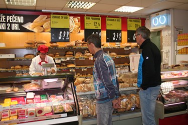 Erste Ziel ist Mojstrana, auf Anhieb ein Supermarkt gefunden wenn auch klein, die Auswahl absolut ausreichend, Neben dem Grundbedarf Brot Milch, Käse, Butter, Obst und Gemüse waren es eher Luxus Artikel die Preiswert erstanden wurden. Frühstück in einer Bäckerei um die Ecke, der Griff zum Geldbeutel fiel bei diesen Preisen keinem schwer. 10 Km Fahrt durch das Vrata Tal, der Ausgangspunkt für die Herbsttour ist er Parkplatz vor dem Aljazev Dom 949 m. Wenige Fahrzeuge stehen an diesem doch großen Parkplatz, mit uns sind noch weitere Bergsteiger/innen bei der Vorbereitung. Während des Packens bei ca. 12 °C, werden 4 Weißbiere getestet, Härtsfelder, Weihenstephaner, Franziskaner und Schneider Weisse, wenig empfehlenswert das Härtsfelder. Olaf der Gepäck König mit 16 Kg, Bodo und Jürgen je 14 Kg, die erfahrenen Jens und Falter je 10 Kg