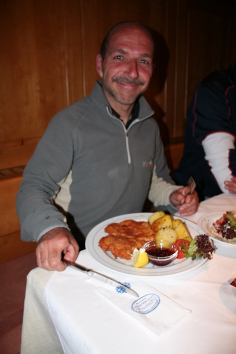 bitter. Ja und es begann schon nach dem Karawanken Tunnel zu Regnen. Der Post Alm Klettersteig im Salzburger Land ist das Ziel, Ausgangspunkt ist Strobl, die kürzeste Fahrtroute war passe als die Ausfahrt verpasst wurde, klappte aber dann in Golling, es war an der Zeit für das Abendessen. Kurz vor 20 Uhr, schien der Ochsen die richtige Adresse zu sein, die Speisekarte weckt Hungergefühle, ganz schön Betrieb eine Busgesellschaft älterer Herrschaften füllte die nette Gaststätte mit Hotelbetrieb. Zwei ältere Damen kamen mit uns ins Plaudern, schnell waren wir nach der Reise wieder locker drauf. Ein Weissbier leider nur Erdinger gegen den Durst, Olaf erfreut sich an einem Grillteller, Jens ein Schnitzel, der Rest Lendchen mit Kroketten und Gemüse, Ein wahrlich gutes Lokal mit richtig leckerer Küche! Jürgen übernahm das Steuer. Die Niederschläge werden immer stärker. Am Post Alm Pass besteht Mautpflicht, zur späten Stunde zum Glück nur 5 €, Da ein Überdachter Schlafplatz benötigt wird, endete diese Fahrt im Zentrum von Strobl. Während Jürgen es vorzog im PKW zu übernachten, wählten wir den Überdachten Bereich direkt neben dem Parkplatz.