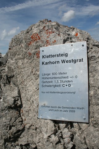 er sei jetzt gerade in Böhmenkirch, tuckle hinter einem LKW drein, WPO wird weniger später angerufen, es geht los! ja ich benötige noch ein paar Minuten, bin gerade dabei die Ausrüstung herzurichten! bis gleich! 10 Minuten nach der Ankunft von Jens trifft auch Wolf Peter ein, das Wetter ist gut und so soll es auch noch ein paar Tage bleiben. Zum Glück ist die Ladefläche nach dem ein Sitz umgeklappt ist Enorm geräumig. Der Grill samt Holzkohlen ergänzt das sicherlich übertriebene Equipment, Schlafsack Isomatte und ein Zelt, klar die erste Nacht findet unter dem Sternenhimmel irgendwo im Lechtal statt. Exakt um 9 Uhr, wird das Fahrzeug in Mergelstetten betankt. Ziel ist Warth. Die Anreise über die A7 bis zum Grenztunnel verläuft Störungsfrei bei angenehmen Verkehrsverhältnissen, bewusst wurde die Strecke durch das Lechtal gewählt, um schon vorab nach einem Platz für die Nächtigung auszumachen. Jens der direkt aus der Nachtschicht angereist war, konnte während der Fahrt nicht so richtig einschlafen. In Elbigenalb in einem MPreis Discounter erweitern Backwaren und Grill Spezialitäten die Speisekarte. Einige Minuten nach 12 Uhr, ist der fast verwaiste Parkplatz an der Steffisalpe Bahn nach 230 Km Fahrt erreicht. Die Bedingungen nun ganz andere als noch vor 3 Wochen, der Schnee war weitgehenst gewichen, kein Wunder auch bei Nacht sind die Temperaturen im Plus Bereich. Ein Gedanke schießt durch den Kopf, wie lange fährt die Bahn (Mittagspause). Die 50 Meter bis zur Station wohl gut investiert, ja in 10 Minuten erfolgt eine Pause von 1 Std. er solle doch noch kurz warten, wir kommen gleich. Jetzt ja nicht trödeln, die beiden informiert, Ruck Zuck ist gepackt, 3 Tickets werden für je 10 € werden erworben, Rein in den 4 Sessel Lift, der Sonne oder besser gesagt denn Wolken entgegen, schön über die Saftigen Almwiesen zu schweben, im Blickfeld das Wartherhorn wenig später auch das Karhorn unser Ziel im Blickfeld, WPO bat aus Konditionellen Gründen um ein lockeren Tourenauftakt mit dem Erreichen der Steffisalpe auf 1870 m sicherlich genüge getan. Sofort nach dem Verlassen der Gondel wurde die Anlage abgestellt. Leider gab es keinen Wasserhahn zum Füllen der Getränke Flaschen. Kleine und der Widderstein selber überraschen wegen ihr Größe und Kühnheit, just beim Weggehen fallen einige Regentropfen,  bei einem lauen Lüftchen es wird doch nicht? Karhorn 2 Std. Klettersteig Karhorn 2 ½  Std. so steht es an der ersten Weggabelung an einem Schild. Ein schmaler Pfad weist den Weg durch die Saftigen Hochwiesen der Steffisalpe, hie und da noch Alt Schneefelder, ein Größeres entspringt ein kleiner Wasserlauf dieser fließt auf dem ausgetretenen Pfad, perfekt Trinkwasser für die nächsten Stunden, das ganze wird mit unserem Sprim (ein Mitbringsel aus Chile „Brause“) in diesem Fall mit Ananas Geschmack in der Trinkflasche gemischt. Eine kleinere Gruppe steigen gerade aus einem Sattel ab queren Waagrecht, wenig später erreichen auch wir diese Querung auf über 2000 m, so langsam sind wir im Tritt es macht richtig Spaß, ja die Stimmung und Freude auf diese Abwechslungsreiche Profitour spürt man im Gespräch. Leichter als Gedacht ist ein 40 Meter breites Schneefeld in einer Schotter Rinne das vom Karhorn Nordgrad herunterfließt. Nach einer ¾  Std. Wanderung gabelt sich der Weg, Links zum Wartherhorn 2256m, rechts Karhorn über den Klettersteig, von hier aus ein erster Genialer Blick in die Lechtaler Alpen die uns in den letzten Jahren stetig begleiteten. Anlegen des Gurts, WPO benötigt dazu unsere Hilfe, scheinbar gar nicht so einfach einzusteigen. Wenig Schritte sind es bis zum Einstieg des Gutmütigen West Grat auf 2200 m. Karhorn Klettersteig Länge 600 m, bei einer Höhendifferenz von 250 m, Gehzeit 2 Std, das bezweifeln wir. Dem Stahlseil folgend wechseln sich leichtere Gehpassagen mit einfacher Kletterei ab wobei die Ausgesetztheit wenig zunimmt, auffällig auch das viele Grün sind doch etliche bewachsene Stellen dabei.