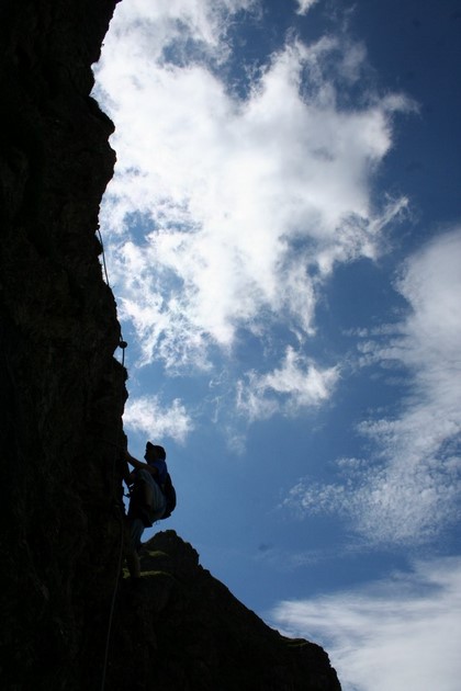 sollte er in diesen fallen könnte es, Nein wird es unweigerlich zu einer Verletzung führen! Nobbe steigt kurz vor 10 Uhr, als erster in die fast Senkrechte und knackige Süd Wand ein, nachdem er die Schlüsselstelle gut bewältigt hat, folgt Jens, Flori gibt mir denn Vorzug, die Jungs sind gut drauf, dies verdeutlich ein erster Austausch.