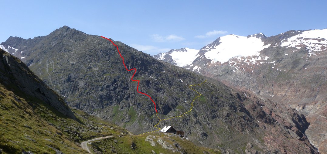 Nach dem Ausstieg erreicht man in 40 Minuten das Hochwilde Haus und benötigt 60 Minuten zur Langtalereckhütte, nach Obergurgl 2,5 Stunden.