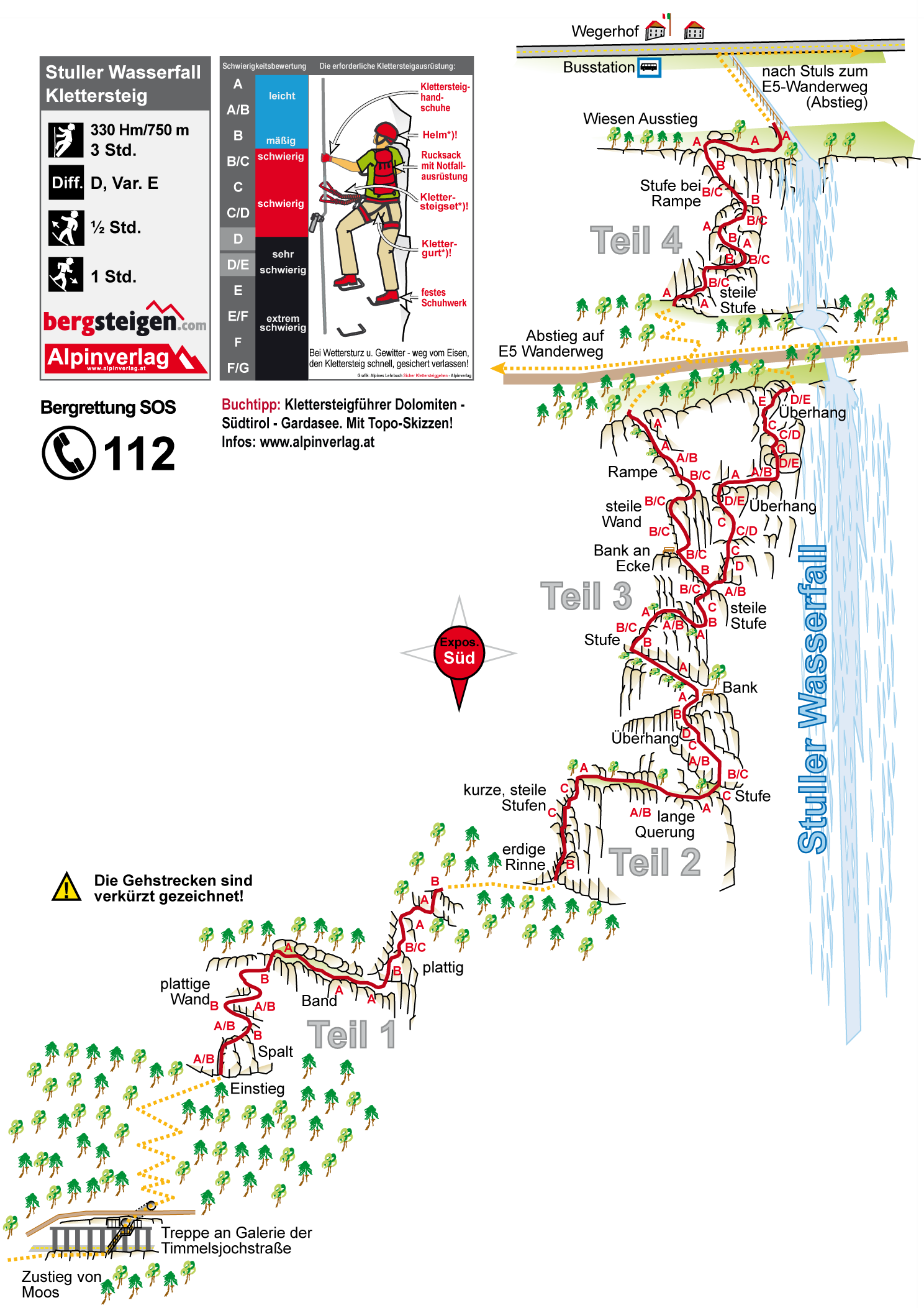 Steigbeschreibung Stuller Wasserfall Klettersteig (Schwierigkeit: KS 4, bzw. C/D)