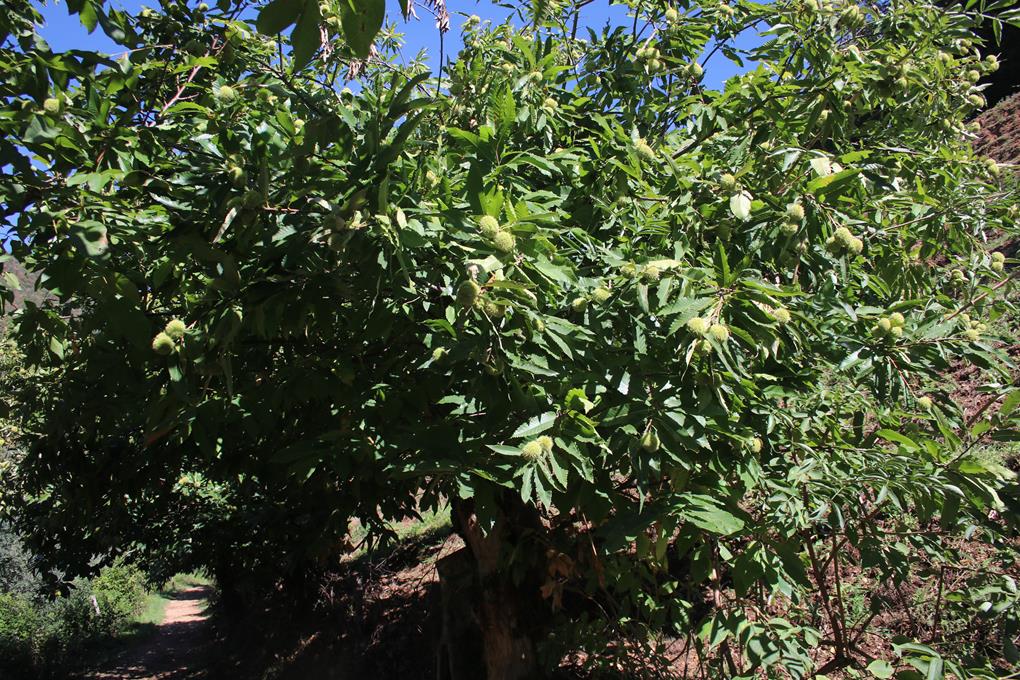 2 Frauen begrüßen uns, ihre bitte denn Parkplatz um die Station freizumachen, dieser Wunsch wird natürlich erfüllt, wenig später öffnen die 2 Frauen in Blauen Müllsäcke gehüllt die Station. Noch immer hat die Sonne das Tal nicht erreicht, doch auch so sind die Temperaturen sehr Ordentlich. Bodo ist Gut drauf klar Knobi ist kein Gift. Auch ich gehe in den Supermarkt um für den Tag den Einkauf zu erledigen, von außen erscheint das Geschäft klein, doch im inneren ein anderer Eindruck dazu gut Sortiert. 1 Kg Brot kostet sage und schreibe 4.90 €, 1 kleines Weißbrot für 1,16 €. Die Auswahl am Tisch Reichlich, Wurst Käse Butter Marmelade eigen Hergestellter Honig von Olaf der sich an Müsli die Power für den Tag einholt. Für die Passanten sicherlich Interessant zu beobachten, wobei der ältere Herr sein Auto Wäscht, ein Brunnen sogar mit Wasserschlauch versehen ist Installiert, sicherlich für die Camper angedacht. Zwei kleine Hunde nehmen wohl das Essen wahr, gehorchen Mutti ganz und gar nicht. Es ist 9.15 Uhr, geworden schon wieder viel zu Spät. Noch immer hat die Sonne das Tal nicht erreicht, die Temperatur auch sehr Ordentlich. Das abspülen übernimmt einmal mehr Olaf. Das Panorama mit den Umliegenden Bergen und den Malerischen Orten die wie ein Schwalben Nest am Hang kleben hat schon etwas. 9.30 Uhr, rollen die Räder Südlich in das 17 Km entfernte Novate Mezzola. Die Wetterprognose meldet 22 °C am Nachmittag Bewölkt aber kein Niederschlag. Die Wanderkarte mit ihrem Maßstab natürlich eine Ideale Hilfe. Ein Taleinschnitt deutet schon auf das Ziel hin, Im Ort zweigt es dann auch links ab, es geht stetig leicht Bergauf. Die Fahrt endet am Ende des Ortes an einem Schotter Parkplatz 316 m, wenige Fahrzeuge Parken hier. Beim Lesen der Info über den Zustieg, bin ich mir nicht klar. Ein Fahrzeug fährt vor, eine Frau versucht sich am Ticket Automat, scheint nicht einfach zu sein, auch wir scheitern mit den Münzen geht es nicht. Wohl ein Einheimischen Ehepaar die Erfolgreich sind, die Frau versucht sich noch einmal, es ist eine Deutsche, sie löst das Rätsel die Autonummer muss eingegeben werden, die Sonne brennt vom Himmel. Mit meiner Kreditkarte gelingt es nicht, gar nicht so einfach dem Ehepaar klar zu machen das wir ihre Hilfe benötigen bieten 7 € in Münzen an, gemeinsam lösen wir das Tages Ticket. Am Brunnen daneben erfrischen wir uns füllen die Wasserflaschen auf eine Multivitamin als Doping. Das ganze Prozedere benötigt 45 Minuten es ist 10.40 Uhr geworden als wir mit kleinem Gepäck kurz bekleidet den Traccelino Steig als Ziel angehen. Reichlich Hinweis Tafeln nahe der Steinmauer eines Gebäudes. Beste Bedingungen so könnte es die nächsten Tage bleiben. Nicht der Straße folgen der Zustieg kann nur am Brunnen beginnen. Die Bäume und Sträucher deutlich Robuster Aufstieg Teils durch Wald der Künstlich Angelegte Weg wechselt die Richtung Östlich, es fällt kaum auf das wir in eine steile Felswand wechseln, es quert Ansteigend wohl auch viel Künstlich geschaffen.Sehr viele Maronen Bäume säumen den Weg. Die Aussicht nimmt zu. Eine Planiere Raupe fristet wohl schon länger hier unter einem Felsen, könnte in Jahrtausend ein Erinnerungsstück dieser Zeit werden. Der Weg ist öfters mit einem Geländer aus Stahlseilen gesichert, durch die Sträucher fällt die Ausgesetztheit nicht so auf. Der Körper kommt auf Touren. Ein Toller Anblick das Blau des Lago di Mezzola. Ein Zipfel des Commersee der nur wenige Kilometer getrennt im Süden liegt ist zuerkennen. Eine Grüne Lichtung mit mehreren Naturstein Gebäuden der Ort Avedee. Fantastisch ein Brunnen mit Wasserhahn am Wegesrand. Diese Einöde ist wohl dem Verfall preisgegeben.