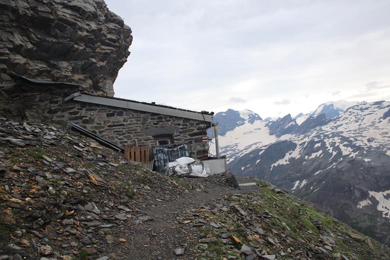 Entspannt der Abend in Gemütlicher Runde. Stuif und Christian nützen das Schweizer Mobifunk Netz, Morgen könnte es Trocken bleiben. Es bleibt in den Bergen wechselhaft. Mit dem Sonnenuntergang färbt sich der Auflockernde Wolkenvorhang auf, bildet interessante Formationen die ein kleines Farbenfestival am Nördlichen Horizont bietet. Im Gespräch mit Ramona erfahren wir ein wenig über ihr Hütten da sein, die SAC Sektion Winterthur betreibt die Hütte. Die wohl 3 Ehepaar aus der Schweiz fühlen sich auch ganz wohl, die Unterhaltungen insgesamt Harmonisch noch etwas verhalten. Brot und Kuchen backen erledigt Ramona geht ganz so nebenbei, auch auf einer kleinen Hütte findet sich immer etwas wo Hand angelegt werden muss. Es gibt ja auch mal einen schlecht Wetter Tag zum Sinnieren. Die Katze ihr treuer Begleiter zeigt sich den Gästen nur selten. Details zum Tag: endet die zweite Etappe 7,99 Km Weglänge, Aufstieg 1080 Hm, Abstieg 250 Hm. Gehzeit 3.42 Std.