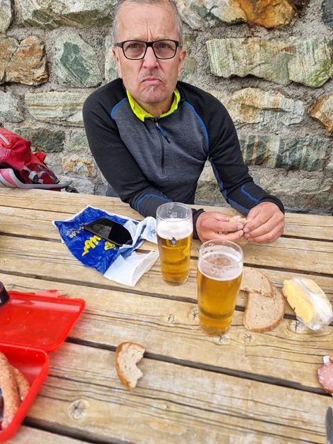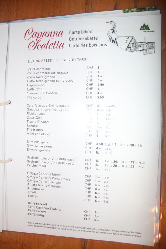 Es ist 20.30 Uhr, als wir den Tisch abräumen. Zum Nachtisch ein Stück Kuchen. Die ersten Gäste ziehen sich zurück. WPO holt das Essen aus dem Rucksack, wobei er die Hälfte im Auto zurückgelassen hat. Ein Bier für WPO und mich, Olaf ein Gläschen Wein. Stuif beschreibt die Tour für Morgen Gehzeit 5 Std. die letzten Getränke um 21.30 Uhr Olaf noch ein Wein 0,1 l Stuif gönnt sich ein Radler, für uns ein Bier 8 Sfr. als die letzten Gäste bezahlen wir um 22.15 Uhr. Es gibt Probleme mit der Kasse, es gibt Probleme mit dem umlegen auf die einzelnen Personen. Stuif bezahlt mit der Karte. Ich Begleiche 85 Sfr.