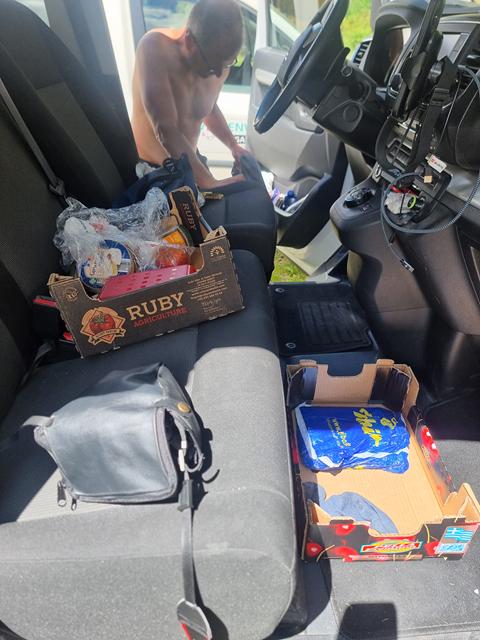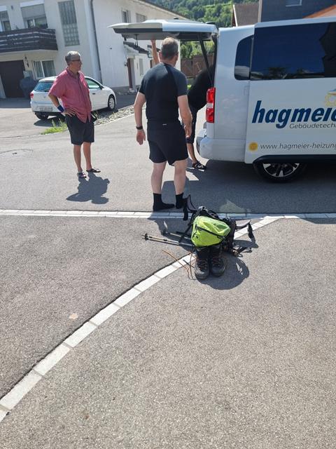 Später als angedacht startet die Rückfahrt. Der Stausee wurde abgelassen, ein Bagger agiert um Grund des Beckens um Treibholz und Ablagerungen zu entfernen. Olaf setzt bei der Abfahrt ob des Gegenverkehr mehrmals zurück. Kleinere Baustellen verzögern ein wenig, über die Autobahn geht es Flott nach Buchs, Stuif geleitet zu einer Kantonal Bank, leider ist ein Tausch nur in einer Nationalbank möglich. 15.36 Uhr, die Heimat von Stuif ist erreicht. Wir übernehmen seinen Anteil der Fahrtkosten. Silke erweist uns die Ehre. Wie schon bei der Hinfahrt wird die Strecke über Hohenems gewählt. Der Verkehr wie immer an einem Wochentag. Wir einigen uns darauf Humprey als erstes dann WPO zuhause absetzen. Dann den Sitz in der Garage von Olaf ausbauen, mit WPO nach Bolheim um den Werkzeug Schrank wieder einzubauen. Olaf erhält 20 € pro Person. 23 °C im Rheintal das ist eher kühl. Um 18 Uhr, sind es in Heidenheim 25°C. Beim Ausbau schlägt Olaf vor, das er mit WPO das Auto wieder Aufrüstet.