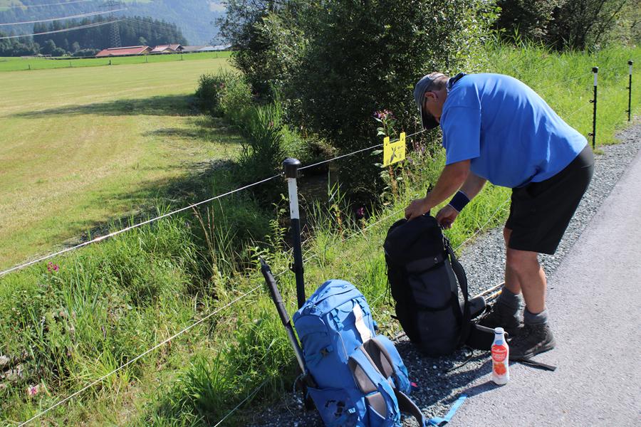 Ruhig gelegen an einer ganz kleinen Straße wohl eine Sackgasse. Keinerlei Verbotsschild, wenige Fahrzeuge sind abgestellt, das passt ja Wunderbar da kommt bei uns Freude auf. Ein Rot Weißer Regional Zug der Pinzgauer Lokalbahn steht am Bahnsteig, Ziel Zell am See. Nach dem abstellen gilt das Interesse dem Fahrplan. Raus aus dem Vehikel, es sind nur ein paar Meter bis zum Bahnsteig mit dem Großen Digitalen Fahrplan 8.50 und 9.50 Uhr, stehen zur Auswahl. Ersterer sollte passen. Sauber die Toiletten. Eine Steckdose unter dem Waschbecken, hole das Handy samt Ladekabel, bringe das Handy unter dem Waschtisch so geschickt an, dass es nicht sichtbar ist. Die Kameraden richten schon ihr Gepäck für die nächsten 9 Tage. Spreche kurz mit einem Busfahrer, der gerade mit einem Postbus vorgefahren ist. Ja der nächste fährt von hier nach Krimml. Das schichten beginnt bei einem Stiegl Bier. Christian freut sich wohl auf die Schuhe die er sofort anzieht. 4 Kg Ausrüstung sind es speziell für die Gletschertouren. Die Kekse und De Beukelaer werden nebenbei als Frühstück verspeist. So langsam erwacht das Volk damit auch vermehrt Verkehr. Der Zug von einer Diesellok getrieben, setzt sich spür und Hörbar nach dem Eintreffen eines Linienbusses in Bewegung. Es ist 8.43 Uhr, Wir sind bereit, nehmen auf einer Sitzbank erstmal Platz, ein Gelber Postbus fährt vor, weitere Fahrgäste haben dasselbe Ziel. Stelle den Rucksack durch den hinteren -ein-Ausstieg in das Fahrzeug, der Fahrer winkt uns durch. Etwas verspätet startet der 3 Achser, Warm ist es nicht nur im Bus geworden. Mehrere Stopps an Haltestellen im Ort. Eine Schaffnerin bietet die Hin und Rückfahrt für 3 Personen für 24 € an. Einfach bitte für 3 Personen, staune etwas über den Preis von 24 €. Nette Ortschaften an der Stecke nach Gerlos, die Höheren Berge der Tauern liegen Links Südlich. Auffällig die Netten Gebäude ein jeder Einwohner besitzt wohl sein eigenes Heim. Die Fahrt von etwas über 30 Km zieht sich durch das Satt Grüne breite Tal begrenzt zu beiden Seiten von Berge hin. Bekanntlich sind die Täler Richtung Süd zu den Hütten Langgezogen. Der Schneebedeckte Venediger kommt in das Blickfeld, Erinnerungen werden wach. Krimml lebt wohl vom Schauspiel seiner Welt bekannten Wasserfälle, ein Parkplatz am anderen. Steigen am P4 auf 1100 m aus. Das Getöse der Wasserfälle sofort Wahrnehmbar. Kurzes Sondieren und Pinkeln, etwas Abwärts mit dem doch schweren Gepäck. Wie gut das die Pizzeria geschlossen ist, wir vertreiben die Zeit an einem Tisch unter einem Großen Roten Sonnenschirm. Reichlich Touristen. Das hier enge Krimmler Achental ist nicht einsehbar, wo verläuft die Straße, links der Wasserfall. Die Pizzeria Cascate betreibt auch ein Shuttle Service mit VW Bussen. Ein VW Bus fährt deutlich vor unserem Termin vor. Christian spricht mit dem Fahrer, während ich die Gelegenheit zum schreiben nütze. Wir sind nicht auf seiner Liste. Weitere Fahrzeugen sind im Einsatz. Ein zweiter VW Bus und ein Mercedes Transporter gehören zur Flotte dieser Fährt zum P3. Zur Abfahrzeit klingle ich zum Tauernhaus durch, eine Frau bemüht sich Telefonisch, wenig später trifft das Mercedes Shuttle ein. Jetzt wird es ernst.13 € pro Person für die Fahrt. Humprey bezahlt auch für mich, verrechnen das mit der heutigen Übernachtung. Das übliche wo setzen wir uns hin, Links umklappbare Sitzbänke darunter steht nun das Gepäck Stück, gut besetzt der Wanderbus.