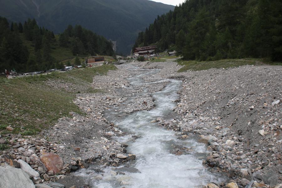 Erstmal in Richtung Gerlos, deutlich höher es zweigt links in den Wald auf eine gesperrte Schotterstraße ab. Meist im 2 Gang steuert der Fahrer seine Hausstrecke ein längerer Tunnel wird durchfahren, ehe die Richtung weiter im Wald zu den vielen Wasserfällen wechselt. Die Wilde Krimmler Ache wird über eine Brücke überquert. Kurvenreich urplötzlich begegnen Etliche Biker meist in der Auffahrt bereitwillig geben diese die Fahrt frei. Warm ist es im Fahrzeug, eine kleine Staub Wolke folgt dem Auto. Nett wie die Wanderer und Radler ausweichen. Flott die Fahrt, selten ist ein Rangieren bei Gegenverkehr nötig. Eine Ebene wird erreicht. Etliche Gebäude zieren die Almen. Weit verteilt die Rinder im sich öffneten Tal. Dankbar steigen wir aus dem Auto diese Monotone Hatscherei konnten wir durch die 30-Minütige Fahrt umgehen. Nicht unbekannt dieser Ort auf 1622 m, 2019 legten wir auf der Berg Woche eine Rast ein. Hier mündet der Rainbach von der Richter Hütte kommend. Ein Blick in den Hof des Landschaftlichen Gutes bestehend aus mehreren Gebäuden. Insgesamt Transportieren 4 Fahrzeuge die Wanderer. Noch ist es Ruhig hier, Biker und Wanderer sind noch auf dem Weg. Kurze Pause um die App für die Aufzeichnung zu starten, und den Flug Modus aktivieren. 3 Std. so die Angabe, die Eismassen des Krimmler Kees Reflektieren die Sonne. Humprey und Christian lasten 13,5 Kg, ich trotz Seil etwas weniger, wobei ich wohl zu viel Wurst eingepackt habe. Hält der Oberschenkel? eine kleine Zerrung vom Sonntags-Fußball ist wieder aufgebrochen. Der Komfort Rucksack schont den Rücken. Die beiden sind schon gestartet, etwas über 700 Hm bei ca. 10 Km. Gut gelaunt und Wohl gestimmt, das Obligatorische Bild beim Start. 11.25 Uhr. Christian stellt sich schon vorab die Frage wann er aussteigt. Ja das Versprechen 14 Kg bis zur Berg Saison 2025 abzunehmen, wie eine Seifenblase geplatzt. Noch sind wir unter der Baumgrenze. Folgen dem Bach Östlich bei Post Karten Wetter. Auf dieser Höhe ist die Temperatur Erträglich. Zu beiden Seiten fließt das Wasser. Ein Guter Tag zum Anpassen, dürften Zeitig an der Hütte sein, eine Pause ist auf jeden Fall eingeplant, aber nicht auf den beiden Almen die am Weg liegen. Auch am Rucksack von Humprey fehlt eine Vernünftige Aufnahme für den Eis Pickel. Landschaftlich schöne Kulisse störend das Monotone gehen auf der Schotterstraße. Imposant die Gipfel, die zu beiden Seiten über 2500 m Hoch sind. Die Unterhaltungen gering, ein jeder geht seinen Schritt. Ein kleiner Wasserlauf lädt für eine Pause ein, etwas Tief der Untergrund ein brauchbarer Platz findet sich, ja das Gepäck wird gerne abgelegt. Das Shirt ist Reif für die Trocknung. Passende Steine finden sich in einer entspannten Kulisse, verteilen uns auf kleiner Fläche, Ein einsamer Ort, nur die Geräusche des Wassers sind Wahrnehmbar. Kühl das Wasser wohlschmeckend das Vesper, Christian reicht Bauchspeck, er schleppt 1 Kg Brot mit sich, dafür soll ich das Seil Tragen. Wir genießen diese ungestörten Momente eine gewisse Zeit.