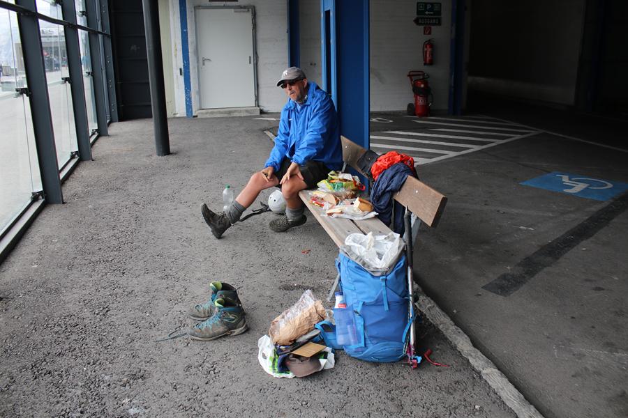 Herzlich die Begrüßung, wahrlich von allen eine Top Leistung heute. Das Gepäck wird an das Auto gestellt, Schuhe ablegen, Verschwitzt das Textil. Humprey beendet die Tour mit 10 Kg, das Seil das ich 9 Tage im Rucksack Transportieren durfte, schlägt sich im Gewicht nieder 12 Kg hängt an der Waage. Wasche die Füße mit Mineralwasser, Einladend eine Park Bank nütze diese für eine Stärkung, Christian dachte an uns, 4 Weißbier 2 Radler 2 Snickers und Laugenstangen, welch nette Geste. Der Verrückte Tag findet hier sein Happy End. Die Fersen von Humprey die eh schon geschädigt waren, sind noch mehr in Mitleidenschaft gezogen worden. Christian bringt uns die 431 Km, in einer sicherlich anstrengenden Nachtfahrt sicher zurück, der erste Halt ist bei Humprey gegen 3 Uhr, bin auch ich wieder im Urlaubs Domizil. Christian dir gehörten ein großes Lob und unser Dank!