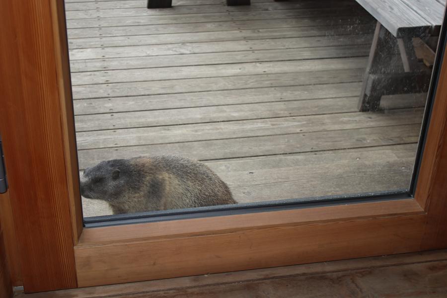 Recht etwas tiefer Grasen 6 Pferde, das Kriegerdenkmal wird passiert, innerhalb von wenigen Meter wird der Hang richtig Grün. Die Salm Hütte 2644 m, wird nach 1154 m Abstieg, wenig später um 15 Uhr erreicht, seltsam die Anordnung der 3 Gebäude. Stelle die Frage in die Runde, ob sie diesen Abstieg dem der gestrigen Tour vorziehen, die Antwort ja. Von hier über den Adlerhorst ist mehr als eine Alternative. Einige Murmeltiere sind nahe der Hütte, das ist doch was Besonderes. Die Außen Gastronomie ist ob der Bedingungen passe, der Thermometer zeigt 12 C° an. Der Bergführer der ersten Gruppe dampft an einer Zigarette. Stelle die Frage warum er von hier die Tour zum Glockner vorzieht, nicht überlaufen, die 1100 Hm sind gut an einem Tag zu bewältigten. Sein Kollege startet Morgen in der Früh mit einer Gruppe, er wird später folgen, das Wetter wird Unberechenbar sein. Mittelbar hinter der Eingangstüre wird der Pickel aufgehängt. Eine Treppe führt zu den Sanitär und dem Schuhraum. Auch hier finden sich Hüttenschuhe. Harmonisch fügt sich das Alte an das Neuere Gebäude. Marco stärkt sich in der Gaststube mit einem Apfelkuchen, Nett die Räumliche Aufteilung, einfachstes Mobiliar, an der Wand eine Eckbank 5 Tische verteilen sich, Dunkel die Holzwand 40 Personen können sich hier aufhalten, dazu kommt noch ein Stüberl. Wir erhalten von der Bedienung das Lager 6 im 1 Stock, Sie weißt mich gleich ein. Sowohl das AV Essen wird angeboten oder ala Carte, die HP darf natürlich nicht fehlen. Marco und ich nehmen das Seil im UG gleich auf, Sie starten gleich in der Früh um 6.30 Uhr, Marco hat am Abend ein Zimmer in Rüdesheim gebucht. Alina und Bodo teilen sich die 3 Schlafplätze Oben im Doppelstock Bett, eng geht es im Raum zu. Wir bereiten uns auf Morgen vor, Bodo übergibt mir Teebeutel. Alina nimmt die zerschmetterte Vesperbox mit. Unterhalten uns ein wenig. Etwas Essen kann nicht schaden Rauschfleisch und Brot. Alina pflastert den Arm von Bodo, der Sturz war nicht glimpflich. Relativ ruhig kann ich im Gastraum bei einem Holunderwasser 4.80 €, an den Notizen arbeiten. Unglaublich und eine Attraktion, ein Murmeltier scharrt an der Gläsernen Balkontüre, möchte in das innere. Nach und nach gesellen sich die vier dazu, Humprey löscht den Durst mit einem Radler Bodo mit Zitronenwasser, sie unterhalten sich Rege, über ein wohl sehr spannenden und gelungenen Tag. Marco legt sich zum Schlafen. Eine Gruppe von ca. 30 Personen hat sich im Laufe unserer Anwesenheit gebildet, sie schaukeln die Stimmung Hoch. Die Temperatur fällt die Wolken hängen Tief, der Thermometer zeigt nur noch 7°C an. Marco bestellt die Halbpension, das Frühstück startet um 7 Uhr, damit ist ein früher Start Act acta gelegt. Die Bedienung fragt wegen des Essens an, Humprey und ich das AV Essen. Bodo bestellt für die HP Spagetti Alina Käsespätzle, sie werden sich die Speise teilen. Kurz nach 18 Uhr, ein Kartoffel Gulasch wird an den Tisch gestellt, das ist doch mal etwas anderes. Sogar Wurst wurde untergehoben, dazu Brot. Alina schneidet den Knobi und Chili im Tablett klein die Bedienung äußert ihren Unmut. Eine Suppe als Vorspeise, Marco erhält ein sehr schmackhaftes Geselchtes. Ruhig ist es geworden.