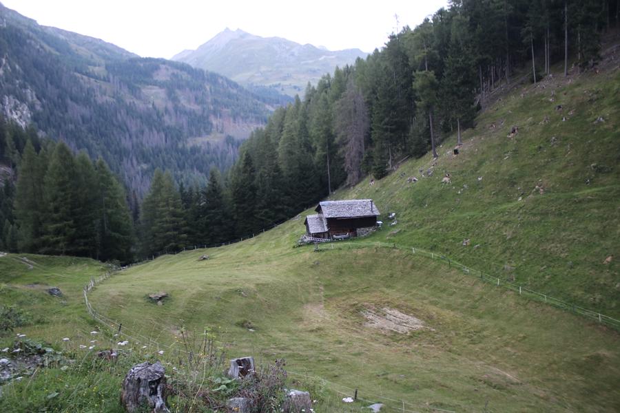An der Fassade eine Fluchttreppe aus Stahl. Schlicht fast Anspruchslos das passt so. Nachdem das Lager bezogen, setzen wir uns an einen direkt neben der Treppe zum Eingang, es windet ein wenig bei eitlem Sonnenschein. 4 ½ Std. allein zum Venediger Haus. Ziel ist das Matreier Tauernhaus, 1 Stunden wird da wohl nicht reichen. Wir sollten sehr früh aufbrechen. Der Bericht zieht mich in den Bann. Das Wetter sollte Morgen ganz gut sein, für Freitag besteht Gewitter Gefahr, Samstag zieht wohl Regen durch. Wie jeden Tag ziehen Wolken durch, während es im Norden Flachland Wolkenlos bleibt. Eine Gruppe die mit dem Schlauchboot auf dem See schipperte kommt bestens aufgelegt zurück. Früh geht die Sonne hinter dem Larmkogel unter. Setzen uns um 18 Uhr um, für uns ist der Tisch 1 an der Türe Reserviert. Zum Essen versammeln sich die Gäste, der wohl schönste Ort in dieser Urig Gemütlichen Gaststube ist der Erker mit seiner Acht eckigen Tisch. Alt Ehrwürdige Leuchter hängen von der Kassetten Decke. Ein Nebenzimmer ähnlichen Stils bietet weiteren Gäste Platz. Das Paar stammt vom Chiemsee sitzt schon am selben Tisch, des Lebens frohen Menschen sind etwas älter als ich er 70 Sie 67. Um 19 Uhr wird ein Pilzragout mit geschabten Spätzle Serviert. Die HP bekommt das gleiche Mahl. Wir erhalten sogar einen Nachschlag. Der Koch nimmt vom Nebenzimmer aus entgegen. Der Koch ist in Rente, solange es ihm Spaß macht bleibt er Treu. Sebastian ist im Sommer hier war davor 10 Jahre auf der Kürsinger Hütte. Im Winter in der Ski Gastronomie. Der Chef betreibt eine Apre Bar, das Personal ist aus Leipzig und Berlin. Theresia war heute zum ersten Mal auf dem Larmkogel. Sie berichtet das ein Geier Öfteren am Grat zu sehen ist. Darf durch ihr Fernglas das auf einem Stativ steht ein Blick in den Larmkogel werfen. Humprey stellt den Wecker auf 5.45 Uhr. Der Bus fährt um 11.56 Uhr am Matreier Tauernhaus. Der Kugelschreiber der mir zur Verfügung gestellt worden ist, läuft fast allein. Bestelle nach dem Himbeerwasser ein Stiegl