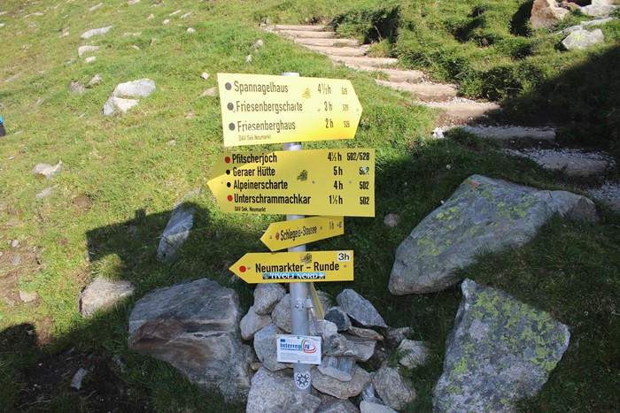 Ein Toilettengang In der Nacht eine Herausforderung, insbesondere eine Senkrechte Holzleiter abzusteigen, die Augen benötigen ein wenig, durch das Fenster dringt ein wenig Licht. Fühlen nach den Schuhen, der Türgriff findet sich durch Tasten. Im WC und Waschraum brennt zum Glück Licht, zum Glück habe ich die Türe angelehnt. Bereits um 6.30 Uhr, Rascheln der Plastiktüten und andere Geräusche beim Packen, es geht im Zimmer und auch im Haus Lebendig zu . Wurle reagiert sowieso auf jede Bewegung oder Geräusch das ihn in Schwung bringt. Die Nasse nicht viel besser, der Schnaps konnte keine Reaktion erzielen. Geschehen verlagert sich nach Unten. Christian vermisst seine Schuhe. Ein Schwung auf die Terrasse, erfreuliches die Temperatur liegt bei 12°C Wolkenlos. Gute Stimmung allenthalben. Es Wuselt im Haus. Wurle ist bereits am Gehen als wir uns am Buffet Bedienen. Milch an der Theke, ansonsten steht alles am Buffet. Schwerpunkt Müsli, Hefezopf mal was ganz anderes Zum Ende nehme ich mir Brot Wurst und Käse für Unterwegs mit. So nebenbei in der einkehrenden Ruhe etwas Bericht. Die Familien am die gestern verspätet eingetroffen sind verweilen am Nebentisch singen einem Kind ein Ständchen, als Geschenk ein Gleitschirm Flug, da fehlen die Worte, einem klein Kind ein solches Präsent. Christian teilt mit das Sandra um 6.10 Uhr, angerufen hat. Bodo lässt Wissen zum Auftakt des 1 Spieltags der Saison 21/22 gab es zwischen Gladbach und Bayern ein 1-1. Sandra ist um 8.10 Uhr in Langenau, damit ist eine Ankunft am Stausee unmöglich, wenn er clever ist, würde er mit dem Bus nach Mayrhofen fahren um Zeit und Geld zu sparen. Wurle erzählt die Chefin ist mit ihrem Hüttenhund Sissi Gassi. 8.25 Uhr, sind wir soweit, die Wegtafel vor der Hütte ein Bild Wert. 4 Std. schwarze Route bis Alpeinerscharte, von dort zur Geraer noch 1 Std. Unangenehm dieser Moment Christian zu Verabschieden.