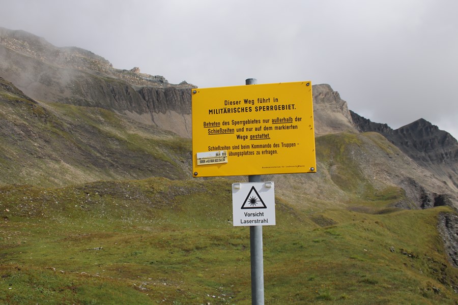 Wow ein innerlicher Aufschrei, der Blaue Junsee ist erreicht, liegt etwas tiefer in einer Senke. Geschätzte Länge 250 m auf 100 m, der Hang des Sägennhorst mündet im Wasser. Zufrieden ob der Schönheit Unterhalten wir uns. Staatlich die Höhe 2523 m. Nebel zieht auf, aus dessen unser Begleitet Bodo entsteigt, nicht mehr ganz so geschmeidig sein Schritt. Eine Gelbe Tafel weist auf das Militärische Schutzgebiet hin. Bei Scharfschiessen Lebensgefahr, wenn`s sonst nichts ist. Der weitere Wegverlauf ist am steilen Hang des Geiers Sichtbar, zum Ende der langen ansteigenden Querung, hat es den Anschein das die Route im nichts Verläuft. Es schaut aus dieser Perspektive im Braun und Grau des Schutts ganz nett aus. Es ist 11.15 Uhr, geworden. Der Aufstieg viel lockerer als angenommen, deutlich tiefer nun der See der binnen weniger Minuten im Grau des Nebels verschluckt wird. Vereinzelt finden Bunte Pflanzen ihren Lebensraum zwischen den Steinen. Was zuvor als schmal und Eng vermutet wurde, ist ein guter Weg der auf einem Band zum Geierjoch verläuft. Ein Blick in die Wanderkarte bestätigt, nach dem nächsten Anstieg, ist der höchste Punkt dieser Etappe, das Geierjoch auf 2725 m, erreicht. Anfangs läuft es sich gut es wechselt in Brüchiges zum Ende in Platten die die auch Senkrecht stehen, die letzten 10 Meter auch ausgesetzt, in der Tiefe der Junsee der jetzt oberhalb der länge nach gequert wurde. Der Geier von Süden ein Typischer Schuttberg, der sich wegen der unbewachsenen Flanke Optisch abhebt. Wegteilung zum Geier und der Stoankaser Alm. Wäre nicht der leichte Wind könnte man eine Schneeflocke fallen hören. Für den Morgigen Talabstieg war der Besuch dieser Käserei ein Thema, doch jetzt wird klar, ein Aufstieg von der Lizumer Hütte bis in das Geierjoch, um danach diesen Weg Abzusteigen, ergibt keinen Sinn. Die Witterung ist nicht gut gesinnt. Die Nase leidet noch immer. Ohne Rast folgt jetzt der Abstieg. Die Beine Rücken und Schulter längst an die Belastung gewöhnt. Während hier die Landschaft Grau und Braun geprägt von diesem Gestein, ist es Östlich am Berg, hinter dem Pluderling auf der Südseite mehrheitlich Grün. Das Wetter könnte halten so hat es zumindest den Anschein. Als Bodo erstarkt ist, schreitet Wurle dem letzten Abschnitt des Tages Inbrünstig voran. Ein Weg leitet zum nahen Gipfel, dieser bleibt rechts liegen. Es sind nicht viele Schritte Östlich bis es abwärts geht. Anfangs läuft es sich im Militärischen Schutzgebiet, auch ohne gute Weg Spur locker. Der Blick in das Langgezogene Tal wird Frei, die Hütte dürfte also bald erreicht werden. Wurle geht rechts obwohl die Markierungen des Weges 323 gerade aus deuten. Na ja zum Glück bin ich im Bilde, ein kurzes zurufen, das Signal ist angekommen. Eine Rinne aus Braunem Gestein lässt sich gut verfolgen, an geeigneten Stelle lässt es sich im Schotter gut abfahren. Linker Hand befindet sich auf einem auffällig Dunklen Fels, eine Art Container, dieser lässt sich dem Militär zuordnen. Bestens Markiert der Abstieg, dazu nicht allzu Steil. Flott wird an Höhe abgegeben, das Beinwerk läuft wie eine Uhr. Ein Fels Rücken in der Mitte, des sich nach oben verengenden Geländes wird direkt überschritten, das erste Grün seit geraumer Zeit unter den Sohlen. Konzentriert den Blick auf den Weg gerichtet, ein kleiner Fehler ein Sturz im Gestein, daran sollte erst gar nicht Gedacht werden. Zeit für Gedankenspiele findet sich immer, was erwartet uns an der Hütte, wie verhalten sie sich mit den Corona Auflagen? Das Tempo ist Bodo angepasst, er fühlt sich als letzter im Bunde ganz wohl , kann er doch sein dem Körper angepassten Tempo gehen. Die Flachen meist Hand großen Platten liegen lose sehr leicht driften sie ab. Im unteren Teil wechselt es mehr in der Mitte des endenden Tal Kessel. Weggabelung von rechts mündet der Weg vom Junsjoch. Jetzt wird mir klar, über das Junsjoch geht es auch zur Stoankaser Alm. Mal sehen für welche Tour wir uns für Morgen entscheiden. Die Kaserne in Lizum, genau dahin führt die Tour. unverkennbar die Gebäude gleichen sich, wenige einfache Häuser, eins davon sicherlich das Ziel. Links neben der Straße könnte die Lizumer Hütte stehen, auffällig ihre Braune Fassade. Eine Schotterstraße endet unter einem Abbruch. Kurz vor erreichen der Straße wird eine Pause eingelegt.