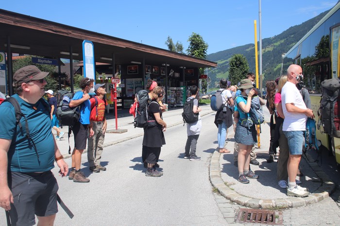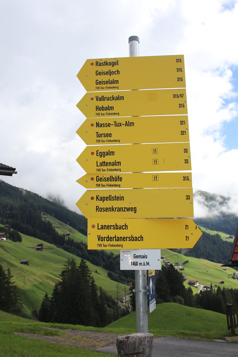 Bereits um 11.05 Uhr, wird der Weiler Gemais auf 1450 m, erreicht. Ein Netter Ort, Alte Historische Holzhäuser dienen nun als Frei licht Museum. Eine Augenweide die bestens Restaurierte Rosenkranz Kapelle, ohne ein Blick aus der Nähe auf das dieses Juwel zu werfen natürlich Unmöglich, wenn auch die beiden keine Anstalten für die Kultur zeigen. Meist Ältere Wanderer wohl Kurgäste, begegnen nun häufiger. Fahrzeuge Verkehren unten im Tuxer Tal, sie erscheinen wie ein Modell, doch die Geräusche belehren eines Besseren. Saftig Grün die Kultivierten Hänge, die als Futter für die Milchkühe dienen. Ein schmaler Weg verläuft nun Süd Westlich, geradlinig Richtung Lahnersbach. Wie gerne würde ich kehrt machen, doch die Zeit für die Tour läuft ab. Die Liftanlage der Eggalm Bahn ist in Betrieb, die Talstation wird 200 m Oberhalb passiert. Zielstrebig in das Zentrum des knapp 2000 Seelenortes auf 1281 m. Belebt der Ortskern. Sofort wird die Bushaltestelle, nahe der Eggalmbahn Sichtbar, Wechsel der Straßenseite, es ist 11.25 Uhr geworden, der Bus nach Mayrhofen fährt in 20 Minuten, Wurle entdeckt gleich neben der Touri Information ein Test Centrum. 3 ½ Gehzeit das spricht für unsere Fitness, wobei die Bein Muskulatur spürbar gefordert wurde. Wie Krass vorher noch Graupel und leichter Schneefall, nur ein gefühlter Augenblick später fast Sommerlich. Rechtzeitig bevor der Bus eintrifft, hält er Freudig das Papier in Händen. Besser kann es doch nicht laufen! Blick in einen Gletscher, dieser Berg, das das kann nur der Olperer sein. Der Bus gut Frequentiert, wäre da nicht der Maulkorb, der ein beklemmendes wie erschreckendes Bild dieser neuen Weltordnung verdeutlicht, das Wohlseins Gefühl und ein gewisser Stolz weicht abrupt. Leicht verspätet trifft der Gelbe Postbus ein, 5.30 € für die Fahrt nach Mayrhofen. Fast ein jeder Sitz ist belegt. Mehrere Stopps für Ein und Aussteigende verzögern die Fahrt. In Finkenberg treffen sich die Buslinien. 25 Minuten später ist der Bahnhof in Mayrhofen erreicht, hier endet diese Gelungene Bergwoche, nach 8 Unfallfreien Tagen. Locker und leicht? Cool und oder Locker, jedenfalls gut gelaunt, die Temperatur geschätzt um die 20 °C, doch das Handy zeigt für Mayrhofen16°C an. Der Große Trubel fehlt, das lässt auch der Verkehr erkennen, dennoch sind etliche Touristen kurz nach 12 Uhr, um den Weg. 10 Minuten Fußweg bis zum Auto, die Wilde Ziller Transportiert die Regenfälle des gestrigen Tages zum Grünen Inn.