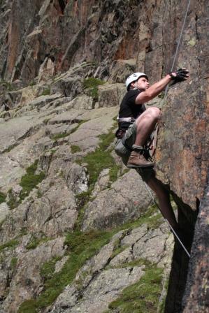 Montag 12.Juli: War das Gestern ein Spuk? bestes Wetter war angesagt Ali und Christian entscheiden sich für denn Fernau Klettersteig Gehzeit etwa 1.Std. Wolf-Pete und ich wagen uns an die Herausforderung die Extrem schweren Variante dem Fernau Express Klettersteig! Beide Steige liegen Parallel nebeneinander und in unmittelbarer Hüttennähe. Zustieg 15 Min. Steiglänge je 350 Hm. Am Einstieg der Steiganlagen(es sind auch noch einfache und kurze Übungs-Klettersteige eingerichtet) trennen wir uns. Es geht gleich kernig los, zwar ist dieser Steig gut versichert aber eben nicht mehr kräftiges zupacken ist angesagt,vor dem Highlight dem Kamin entscheidet sich mein Begleiter über einen Verbindungsweg zur einfacher Variante des Aufstiegs zu wechseln, bin zwar der Meinung er hätte es gepackt aber was noch folgte war schon vom feinsten, Ungesichert wie es so meine Art ist, benötigte ich für das empor turnen am Stahlseil exakt 30 Minuten, angegeben war doch glatt 1 Std. Anfangs waren die Kollegen am Grat bzw. Flanke auszumachen doch irgendwann verloren sich die Blicke.