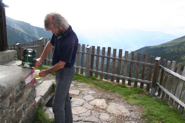Mittlererweile befand sich Wooley auf dem Weg zurück zur Anton Renk, gefolgt von einer Herde Ziegen die im sicheren Abstand warum? dem schwer bepackten folgten, die letzten Meter im immer steiler werdenden Gelände setzten dem absoluten Top Athleten (Marathon Läufer) ganz schön zu, beim erreichen des Ziels war klar warum, hatte sich doch die Ladung ganz heftig verlagert, geschätzte 20 Kg machten im zusätzlich mühen grins....Als Belohnung gab es wenig später ein guten Tropfen vom Edlen Hopfen.