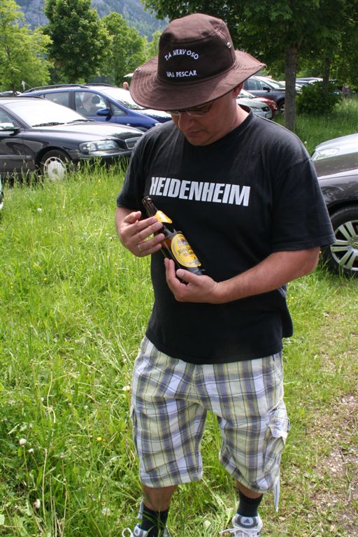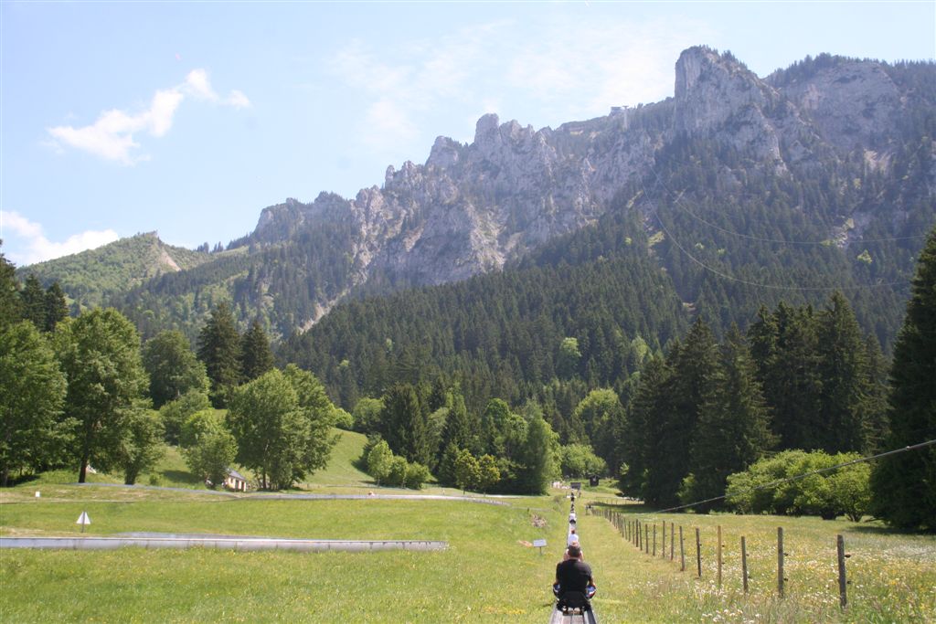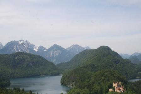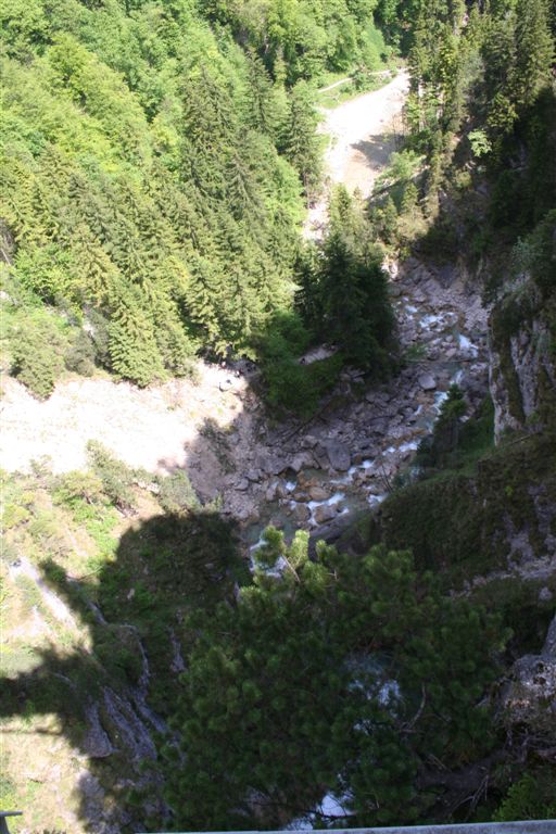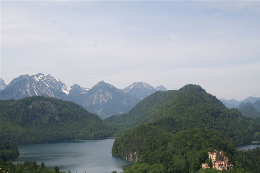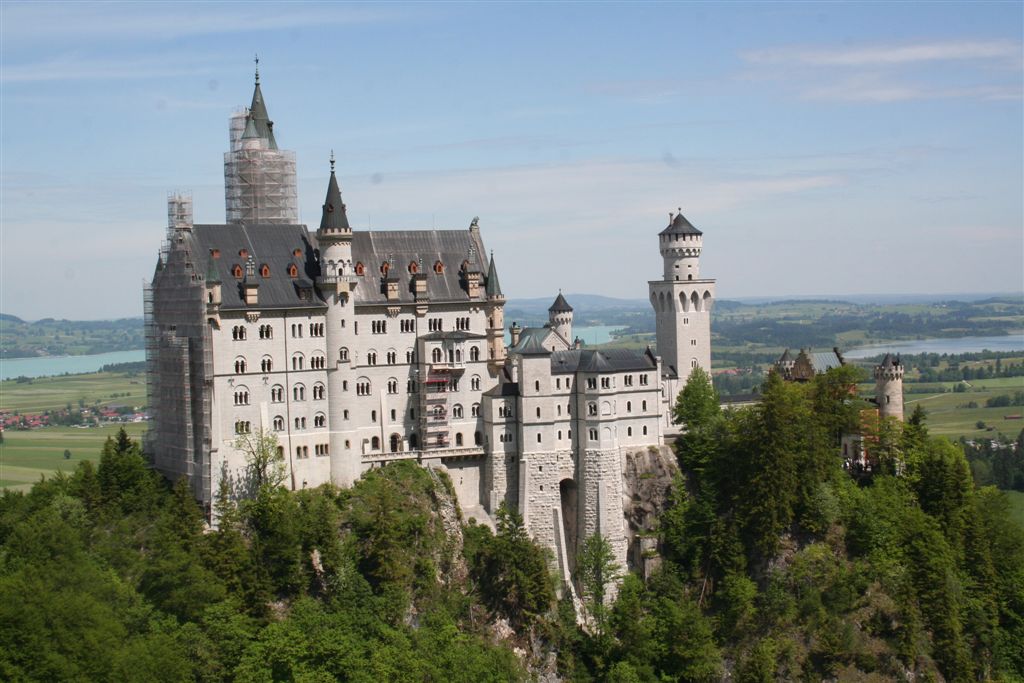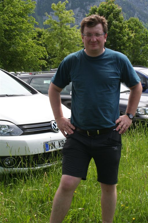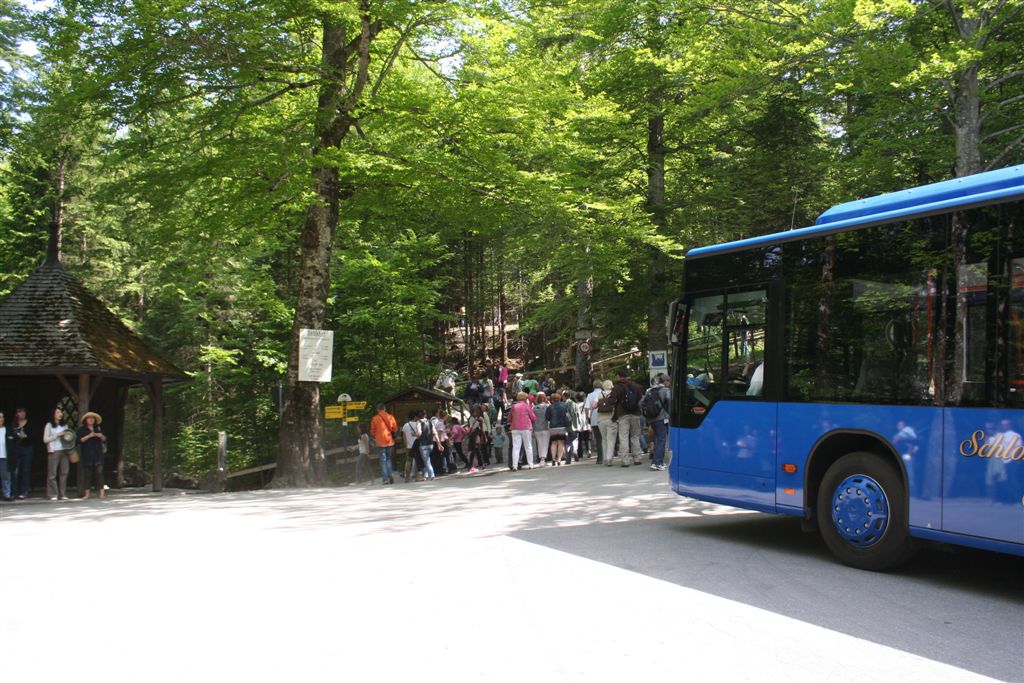 Sonntag 27.Mai: Längst herrschte rege Aktivität, doch wir ließen es uns nicht nehmen, eher später als die Allgemeinheit am Frühstückstisch Platz zu nehmen, was sich so alles brauchbares in denn Rucksäcken findet…..nach dem abspülen galt es die Rechnung zu begleichen, reichlich kompliziert rechnete der Hüttenwart ab, zu allem Unglück hatte er sich zu seinen Gunsten verrechnet, aber aus Dankbarkeit für diese Tolle Herberge, gönnte ich im diesen Zehner aus meinem Portmonai. Es war 10.30 Uhr. Bei leicht diesigen Wetter und 15 °C, es sollte sehr schnell richtig schön und Warm werden, war das nächste Ziel angesagt, die Weltbekannte Marienbrücke. Der Landschaftlich schönere Wasserfallweg wurde der eintönigen Strasse bevorzugt. Dann um 11.15 Uhr nach einer scharfen Kehre der absolute Schock! wie aus dem nichts, waren wahre Menschen Maßen unterwegs, ihr Ziel die Marienbrücke bzw. der Rückweg. Die Pause bis zum eintreffen der Kleinkuchener diente zum anpassen an diese doch völlig verrückte Begegnung nach der Ruhe der Bergwelt. Vor der Brücke ging es richtig Eng zu, Gedränge wohl das bessere Wort, mit etwas Geduld konnte die Stählerne Konstruktion betreten werden, faszinierend wie sich doch einige Krampfhaft am Geländer festhielten, ja die 70m Tiefenblick nicht jedermanns Sache! Jedenfalls ist der Blick von hier aus auf das Märchenschloss absolut überragend, eigentlich Pflicht, denn einen besseren Blick gibt es wohl nirgends zu erhaschen. Über die Pöllatschlucht die im unteren Teil Klammartig ausgebaut ist, war das letzte Ziel unserer Reisegesellschaft die Talstation der Tegelbergbahn. Bevor wir uns verabschiedeten galt das Interesse der Sommerrodelbahn, die bei Christian bestimmt in Erinnerung bleiben wird, ist im doch glatt während der Fahrt die Mütze verloren gegangen, nachdem die anstrengende Suche vergebens war, konnte das Personal nach Nachfrage die Kopfbedeckung aushändigen, ist diese doch glatt in denn Kufen des nachfolgenden Schlittens hängen geblieben. Während die vier denn Nachhauseweg antraten, war für uns erst Halbzeit.