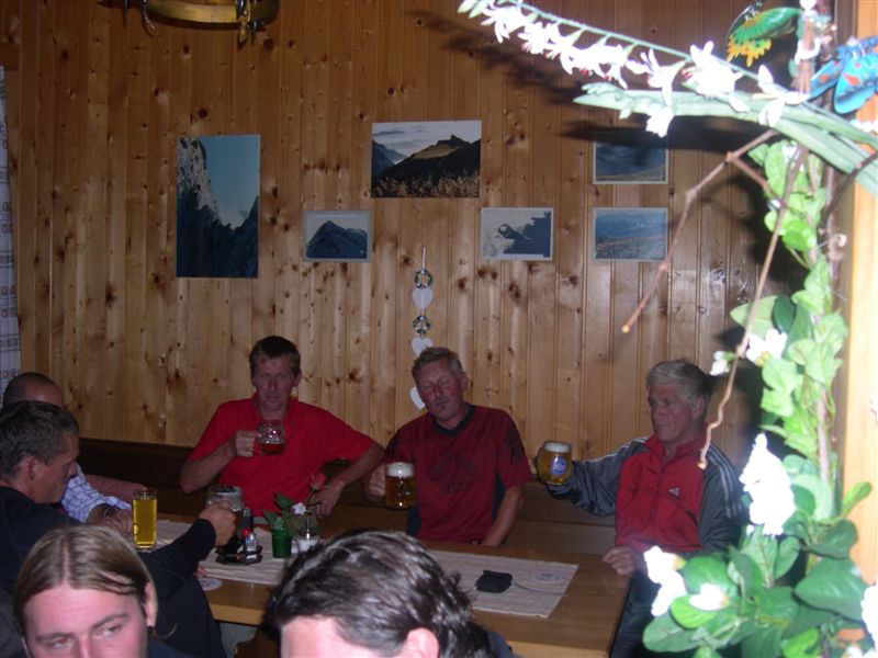 . Auch ich musste irgendwann mal angelehnt an einer Raumstütze eingenickt sein, jedenfalls war das volle Glas leer, Bodo wollte mich wohl schonen! jedenfalls ging`s an die Theke, ruck zuck war der Pokal gefüllt. Da die Hüttenruhe an diesem Sensationellen Tag aufgehoben war, "verlief sich das ganze". Gegen 24.00 Uhr, war das geschehen überschaubar ah ja... zwischenzeitlich wurde das Lager inspiziert, das der Hüttenwirt wie ein Geheimnis hütete, genialerweise quartierte er uns in einem zwei Bett-Zimmer ein, das mit dem Preis dann Morgen, auch die Rechnung wird beim Frühstück geregelt, ja auch das Personal ist im Rausch der Stimmung etwas unter die Räder gekommen!!