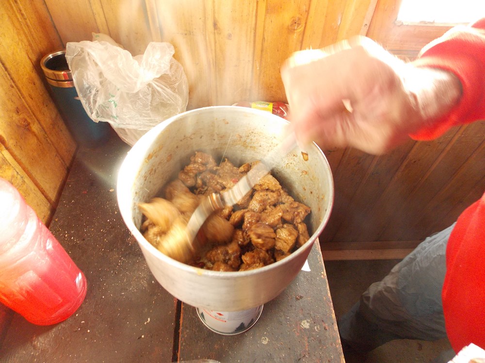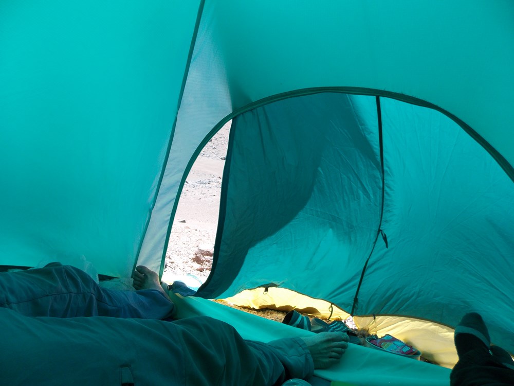„Schnell“ wird das Zelt aufgestellt, um vor diesen Orkanartigen Sturmböen Schutz zu finden, selbst die Steine die wir zum beschweren der dafür am Zelt vorgesehen Einrichtung legen, werden durch das Flattern der Plane im Wind bewegt, Schitt. Im Zelt ist es aber durch die Sonne angenehm