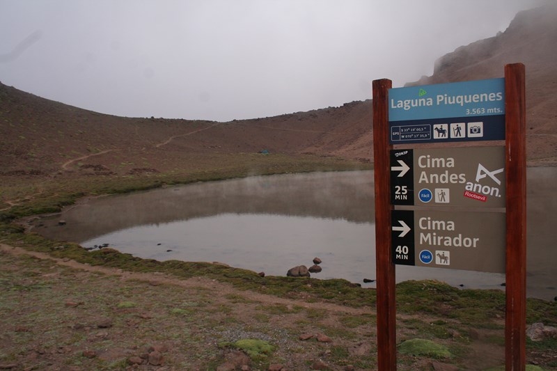 Muchas Gracias! Der Anstieg erwies sich Dank des schweren Gepäcks, geschätztes Gewicht 18 Kg als harte Arbeit, dazu Nebel und unangenehmer Wind viele Wegspuren, aber das Wissen dem Skilift ein 4er Sessel zu folgen, beruhigte ein wenig, wäre Jens nicht schon vor 4 Jahren (bei der Vorbereitung "Piuquenes" hier unterwegs gewesen) ich hätte mich glatt verhauen! es war 19.00 Uhr, das erste Camp am "Lago Piuquenes" auf 3565m leicht unterkühlt erreicht. Professionell erfolgte das Einrichten des ersten Lagers, auf der Suche nach Wasser hatte ich ein wenig Glück, ca. 15 Geh Minuten befand sich am Hang ein kleines Rinnsal. Wieder Mal gut gegangen. Bedingt durch die hereinbrechende Nacht und des Wetters, wurde im Vorzelt unter höchster Sicherheit gekocht. Ja wie von Fritz versprochen, klarte es in dieser Nacht wieder auf, bedingt durch diese Enorme Höhe konnte von Schlaf nicht gesprochen werden, klar die Umstellung am Boden zu liegen das andere.